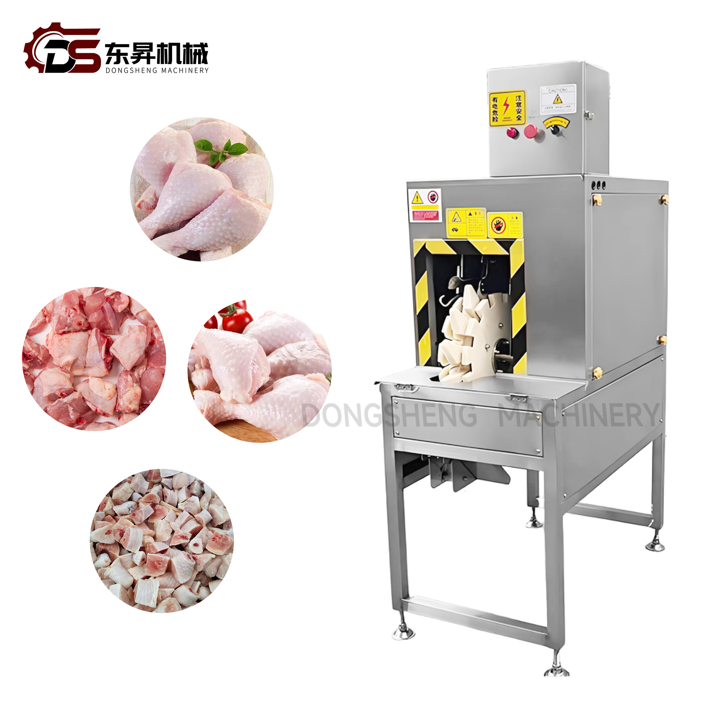 Crafted from food-grade 304 stainless steel, the machine is corrosion-resistant, easy to clean, and compliant with global food safety standards. It comes with sharp, wear-resistant blades that stay sharp after long-term use, and the adjustable blade distance allows customization of cutting sizes (3-8cm) to match different product needs. The auto-feed system minimizes manual contact with raw poultry, improving hygiene and reducing labor costs.